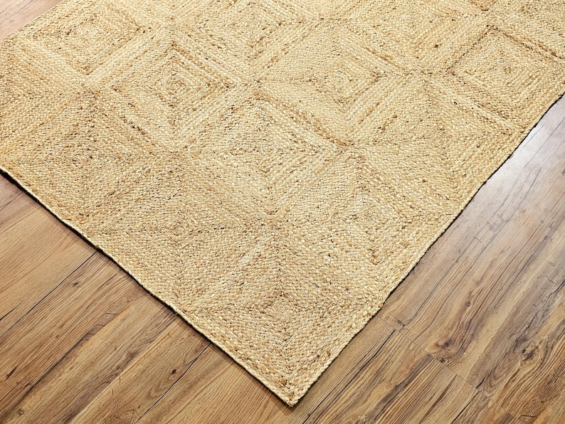 Natural Sisal Braided Area rug, Square Boxes Jute Rug, Tiles Jute Area Rug