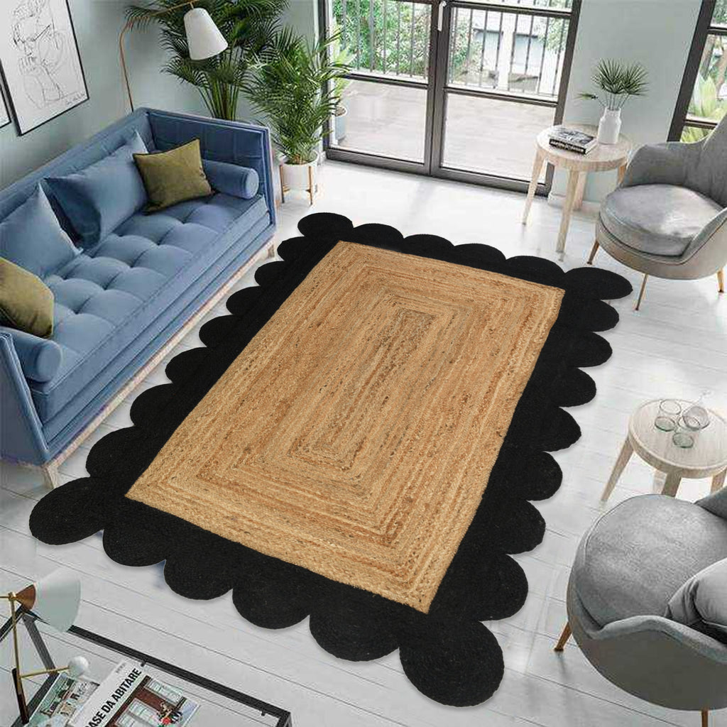 Natural Jute Rug with Scalloped Edge, Durable Jute Scalloped Rug, Area Rug for Busy Space and Entryway