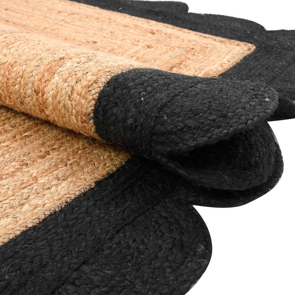 / Natural Jute Scalloped Rug, Black Scallop Edge Rug Runner, Modern Decor Boho Hallway Carpet