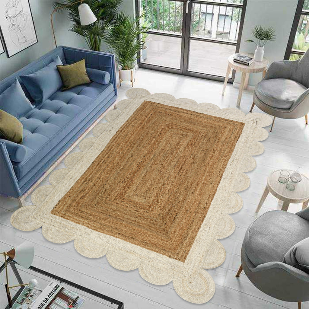 Natural Jute Rug with Scalloped Edge, Durable Jute Scalloped Rug, Area Rug for Busy Space and Entryway